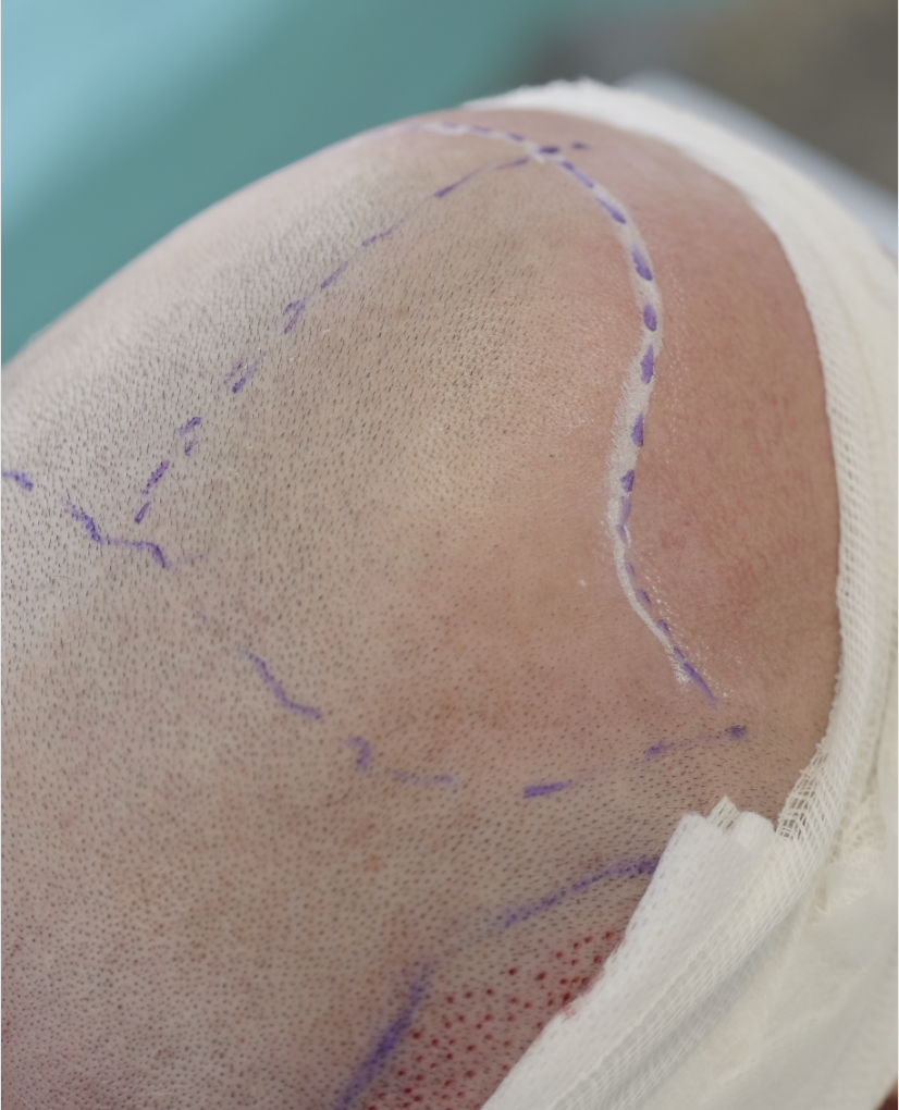 Avec la méthode FUT, un lobe de peau est prélevé à l’arrière du crâne, puis les follicules capillaires sont disséqués et transplantés sur la zone cible. Cette méthode entraîne une cicatrice linéaire plus visible.